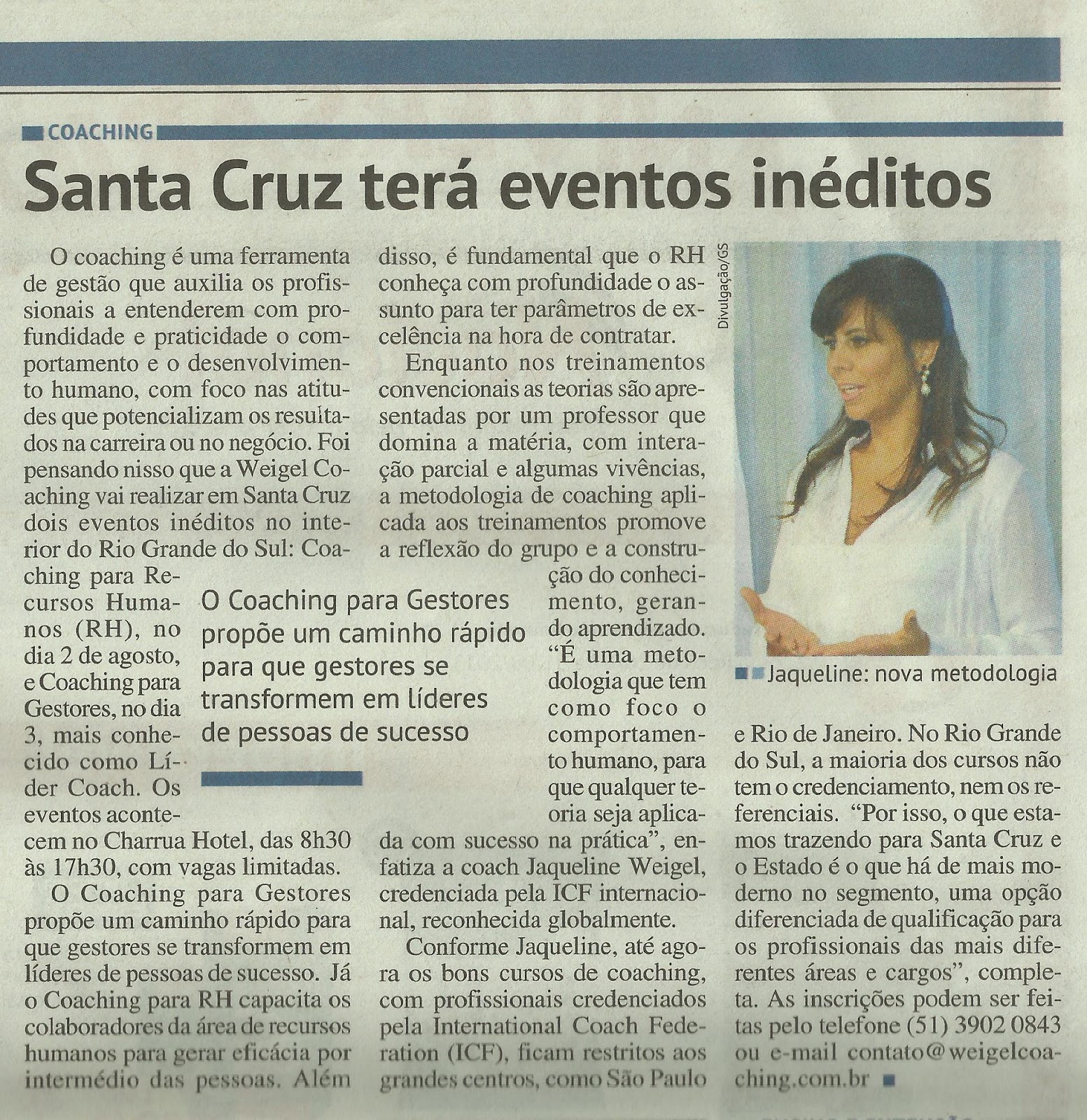 Leia a matéria sobre os CURSOS INÉDITOS que a Weigel Coaching traz para Santa Cruz e região. Aprender sobre coaching fará parte da vida profissional de líderes e gestores de RH.